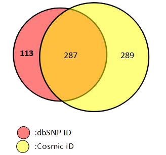 圖4. 突變細(xì)分種類的位點(diǎn)數(shù)(經(jīng)過(guò)驗(yàn)證的位點(diǎn)) 7. 位點(diǎn)多,超過(guò)680個(gè)位點(diǎn),全部有對(duì)應(yīng)的Cosmic ID或/和dbSNP ID注釋;