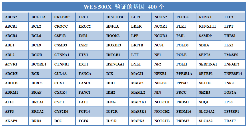 表4. 500X WES驗(yàn)證的400個(gè)基因信息 9. 基因覆蓋科學(xué),超過(guò)400個(gè)基因,覆蓋國(guó)內(nèi)外多個(gè)知名panel的設(shè)計(jì);