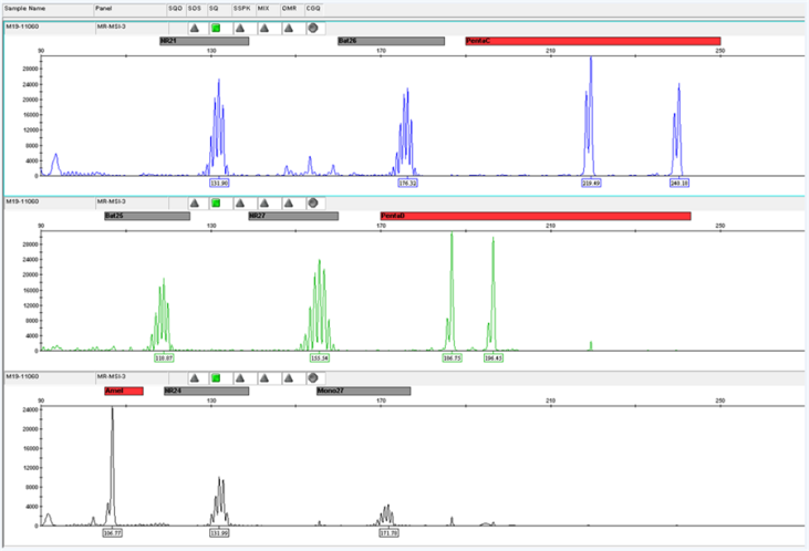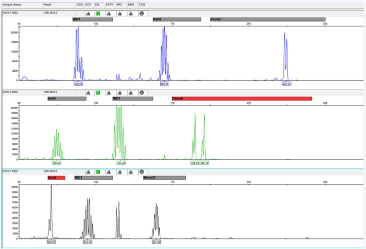 微衛(wèi)星是人類基因組的一段串聯(lián)重復(fù)序列,一般在1~6bp之間,又被稱作短串連重復(fù)(Short Tandem Repeats,STRs)或簡(jiǎn)單重復(fù)序列(Simple Sequence Repeat,SSRs)。 微衛(wèi)星不穩(wěn)定(Microsatellite Instability,MSI)指的是微衛(wèi)星重復(fù)次數(shù)減少或者增加,微衛(wèi)星不穩(wěn)定的內(nèi)在機(jī)制是錯(cuò)配修復(fù)(MMR)系統(tǒng)失調(diào),從而限制了糾正微衛(wèi)星自發(fā)的長(zhǎng)度改變的體細(xì)胞突變的能力,體細(xì)胞突變積累,最終形成MSI。