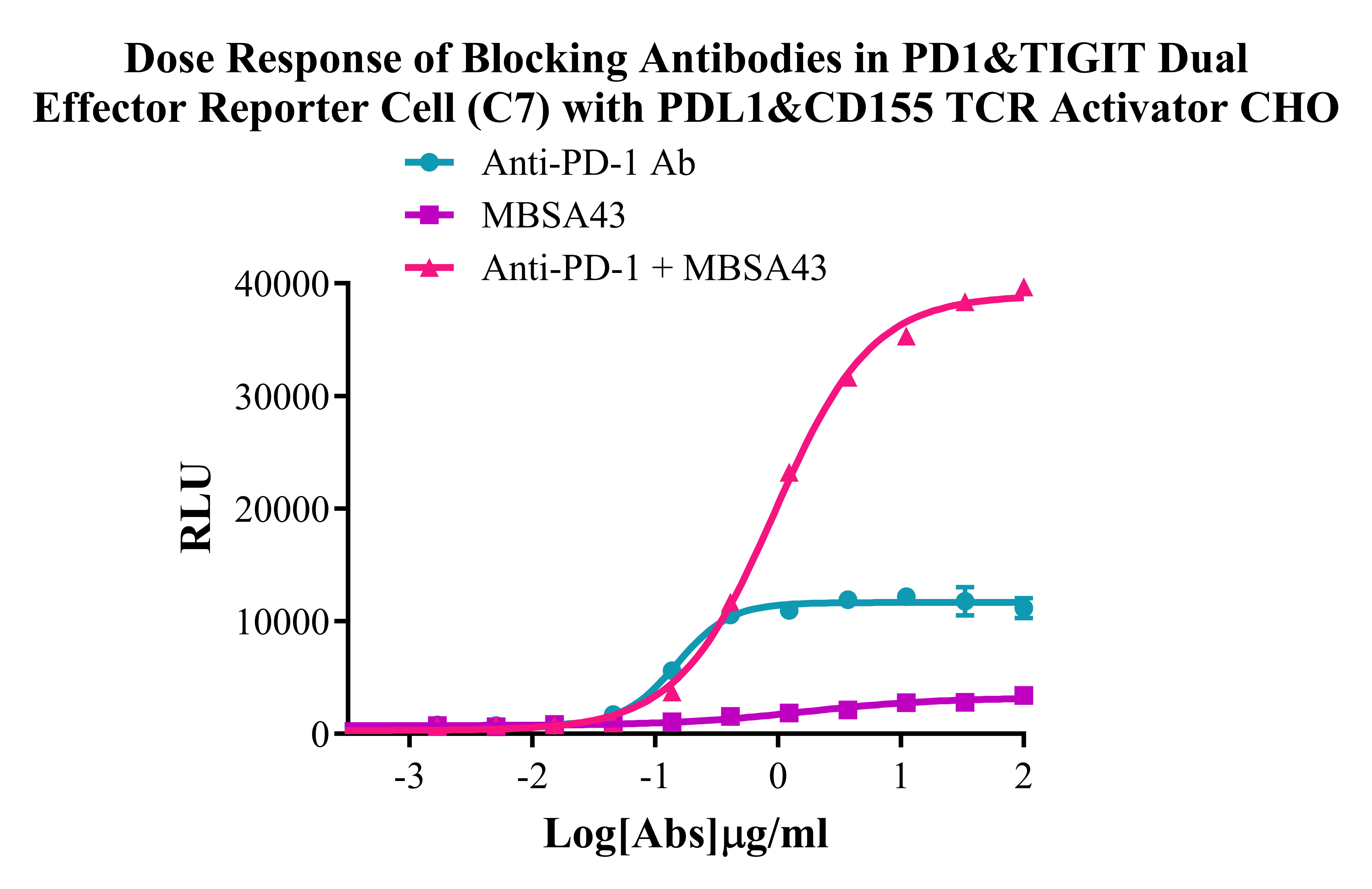 Figure 2. Dose Response of Blocking Antibodies in PD-1&TIGIT Dual Effector Reporter Cell (C7) With PD-L1&CD155/ TCR Activator CHO.