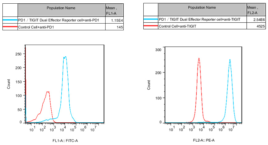 Figure 2. Recombinant PD1/TIGIT Dual Effector Reporter Cell constitutively expressing PD1/TIGIT.