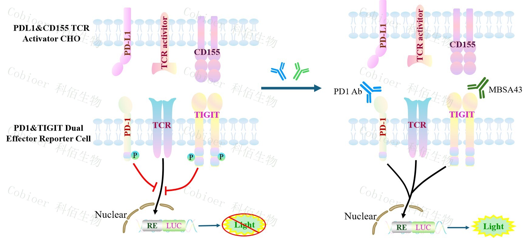 ![]() Figure 1. PD1&TIGIT Dual Effector Reporter Cell 細(xì)胞模型原理圖 |