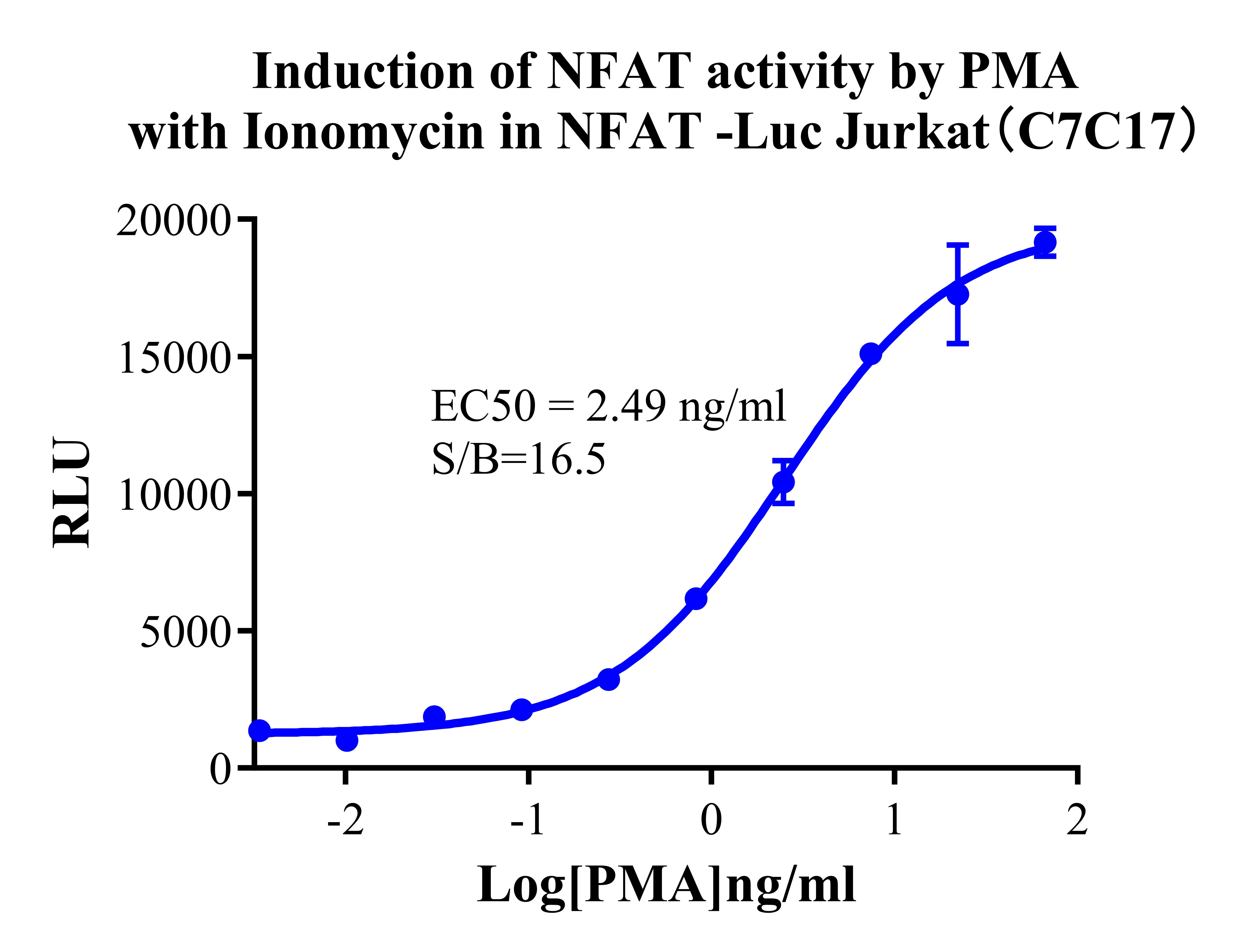 Figure 2. Detect Luciferase assay by Ultra Luciferase Detection Kit CBPH0001(we strongly suggest to purchase from Cobioer). Induction of NFAT activity by PMA with Ionomycin in NFAT-Luc Jurkat(C7C17). |
