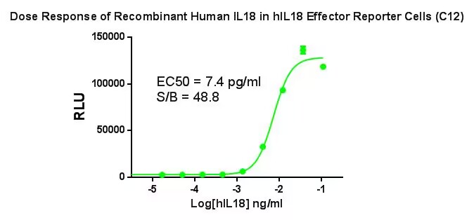 Figure 1.Dose Response of Recombinant IL-18 in IL-18 Effector Reporter Cells(C12). |
