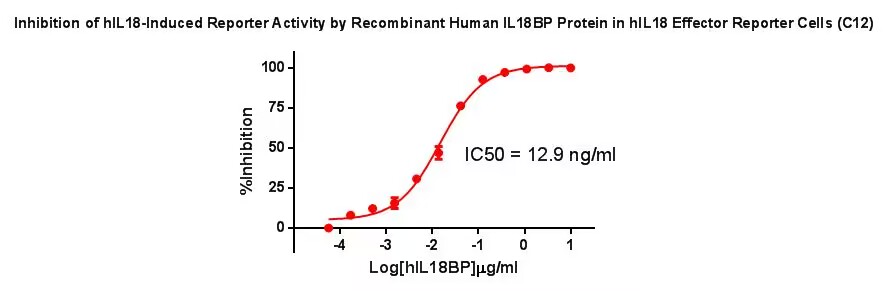 Figure 2.Inhibition of hIL18-Induced Reporter Activity By Recombinant Human IL18 BP Protein in hIL18 Effector Reporter Cells(C12). |