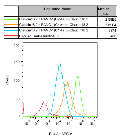 Claudin18是位于細(xì)胞膜表面緊密連接的主要成分,它在維持細(xì)胞極性和屏障功能以及促進(jìn)耐酸能力方面起著重要作用。CLDN18的第一個(gè)外顯子可以選擇性剪接,形成兩個(gè)具有高度同源氨基酸序列的不同剪接突變體(CLDN18.1和CLDN18.2)。跨膜蛋白CLDN18由兩個(gè)細(xì)胞外環(huán)、四個(gè)跨膜結(jié)構(gòu)域和一個(gè)細(xì)胞質(zhì)結(jié)構(gòu)域組成。 |
