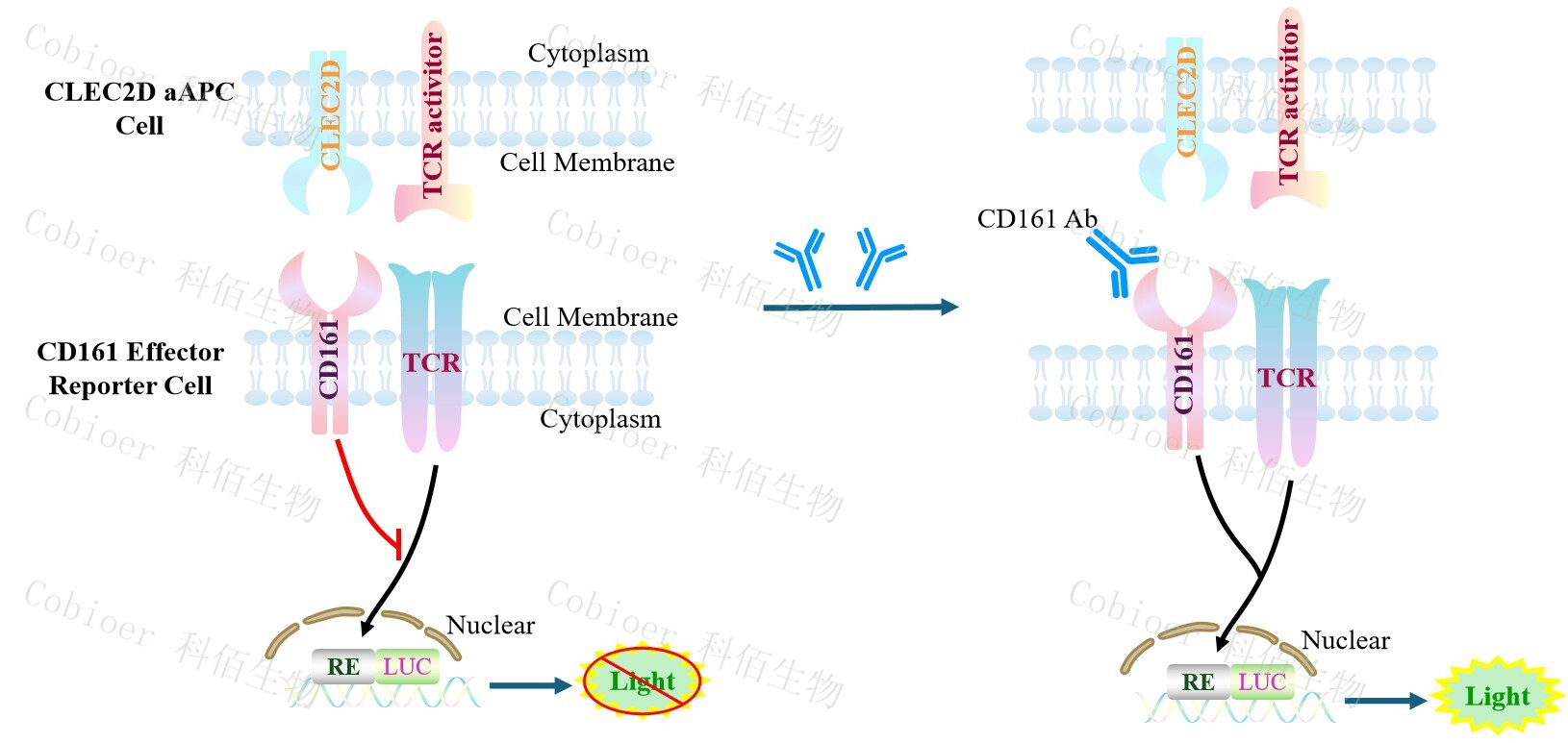 CD161 Effector Reporter Cell 報告基因藥靶模型很好的模擬了體內(nèi) CD161 的信號轉導 過程,原理見下圖所示。