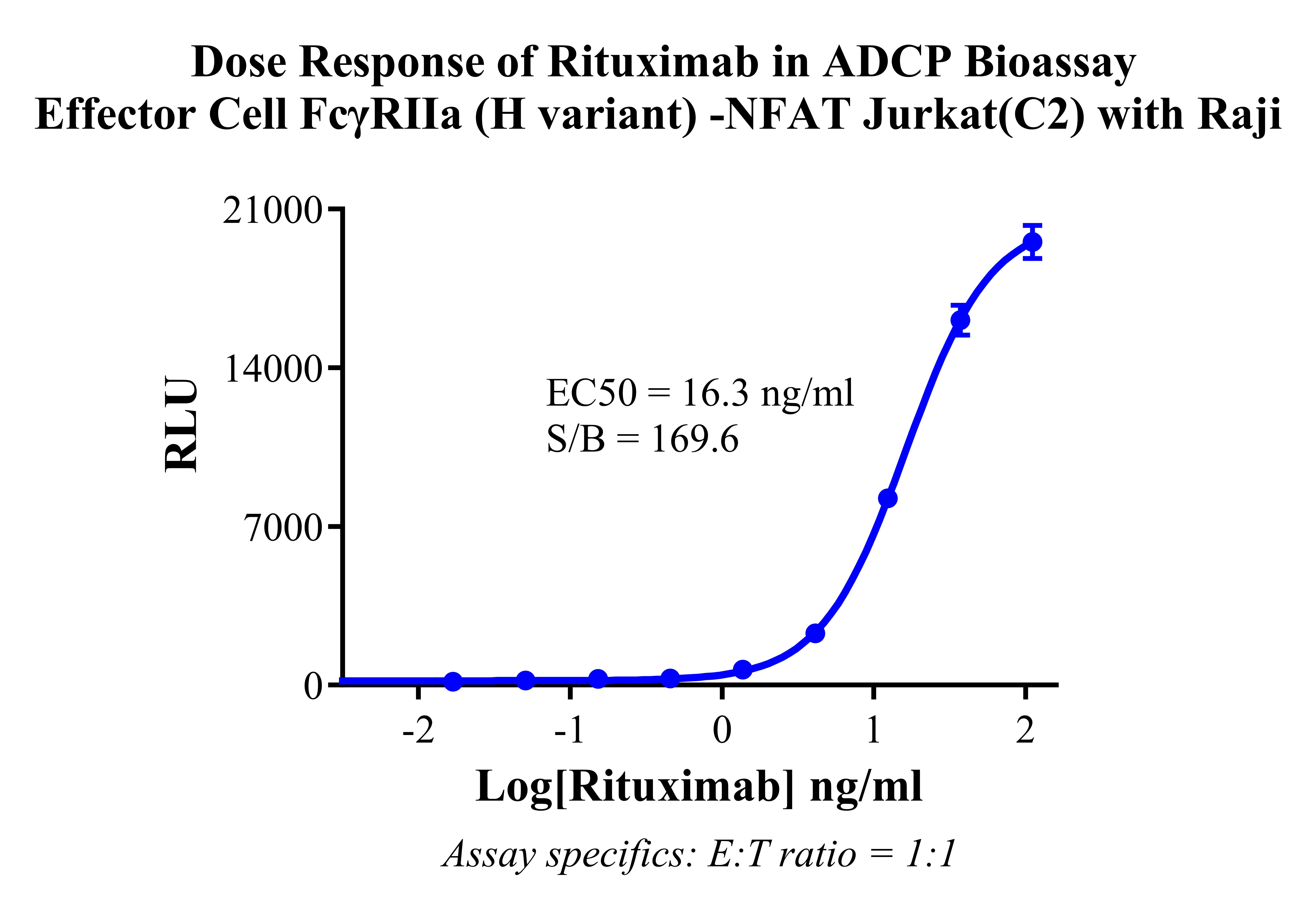 Figure 2. Dose Response of Rituximab in ADCP Bioassay Effector Cell FcγRlla (H variant) -NFAT Jurkat (C2) with Raji. |