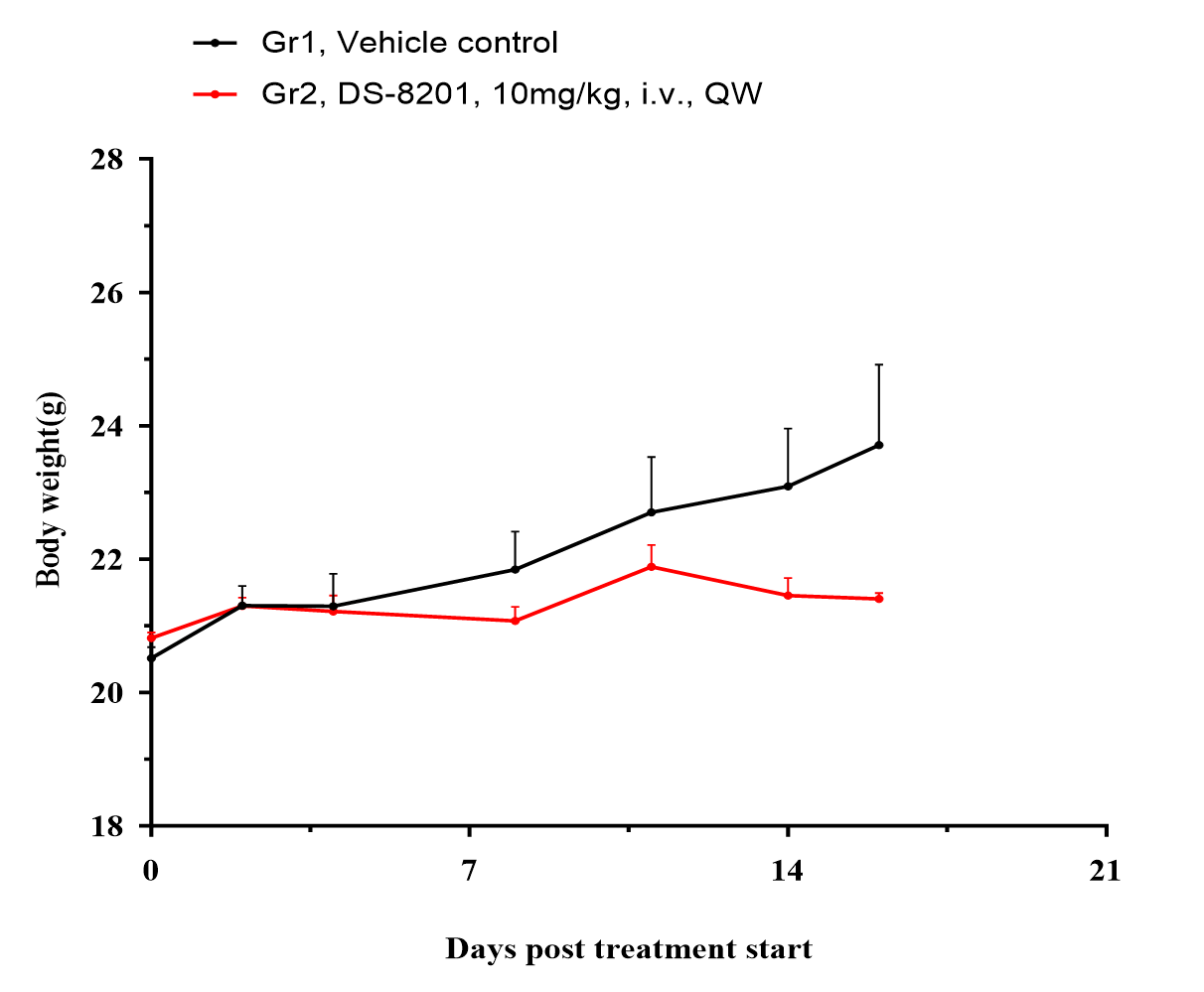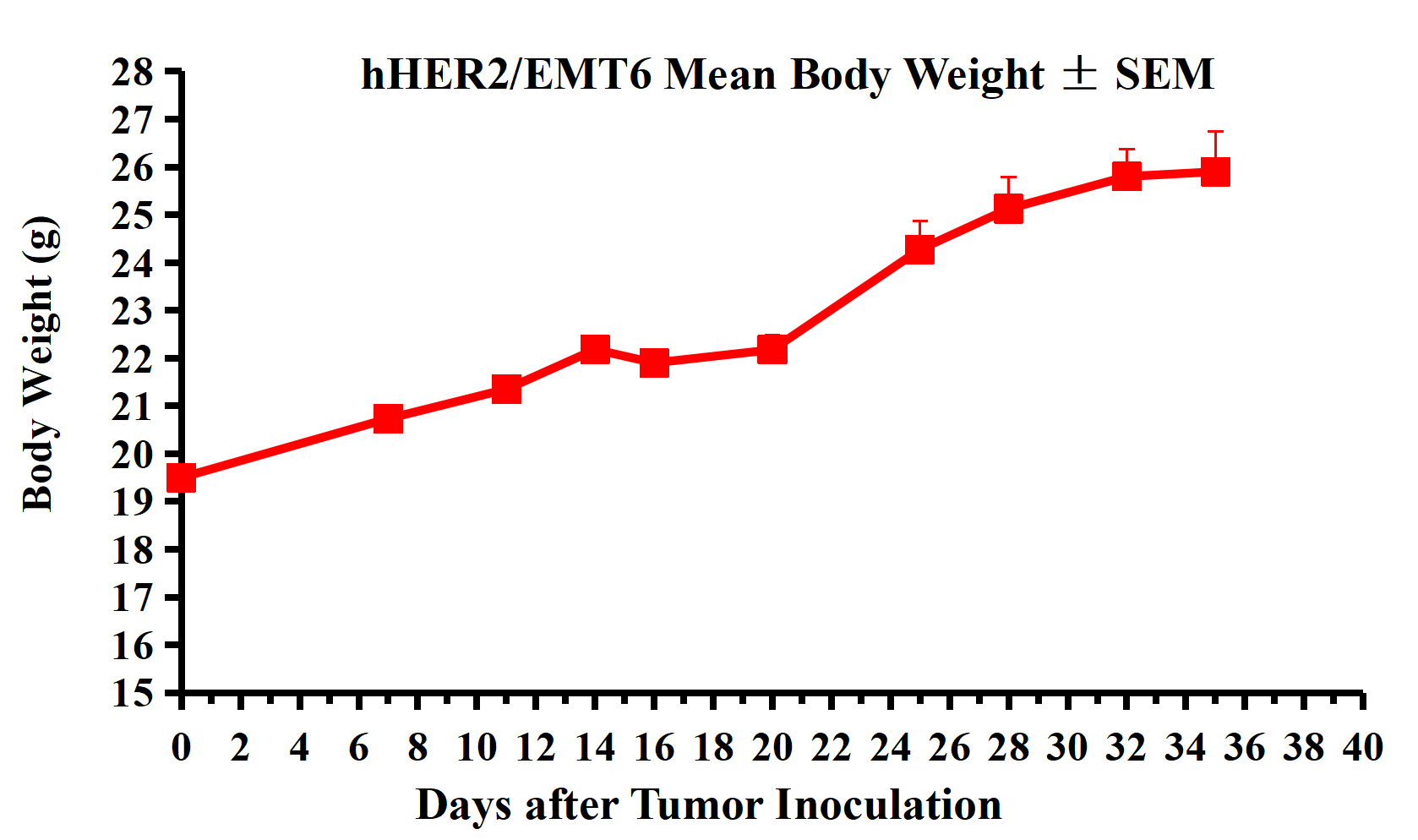 Figure 4. hHER2/EMT6 Mean Body Weight ± SEM.