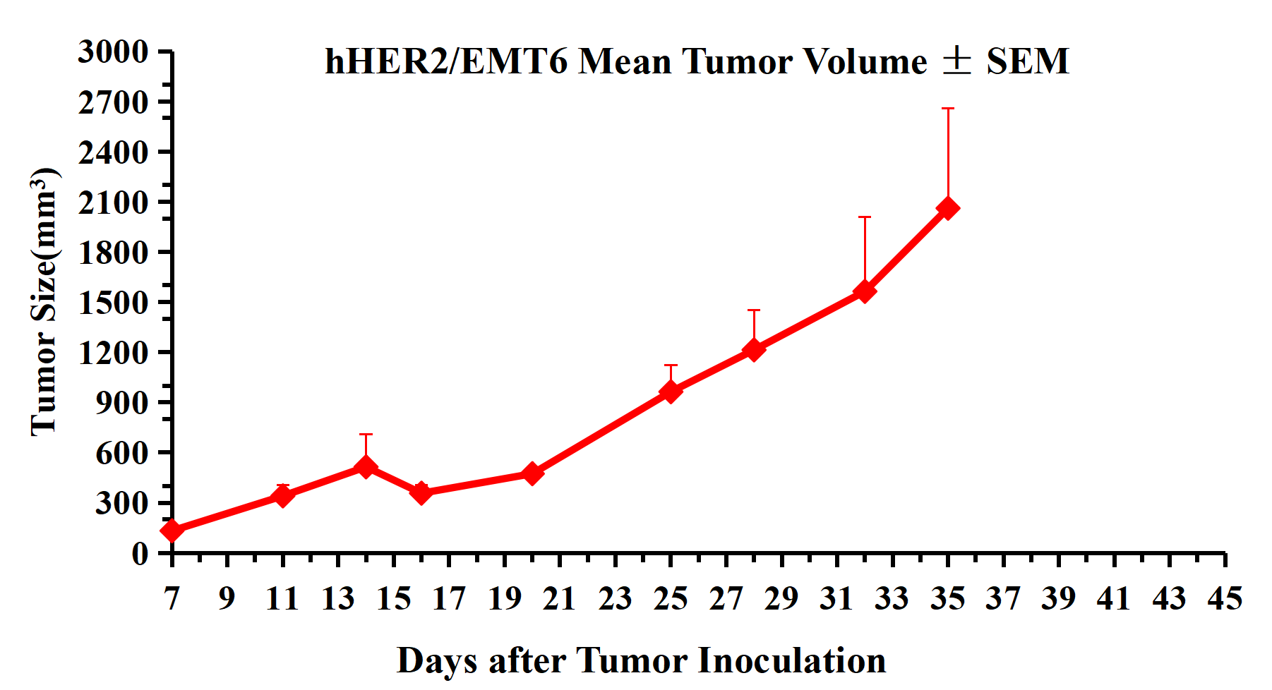 Figure 5. hHER2/EMT6 Mean Tumor Volume ± SEM .
