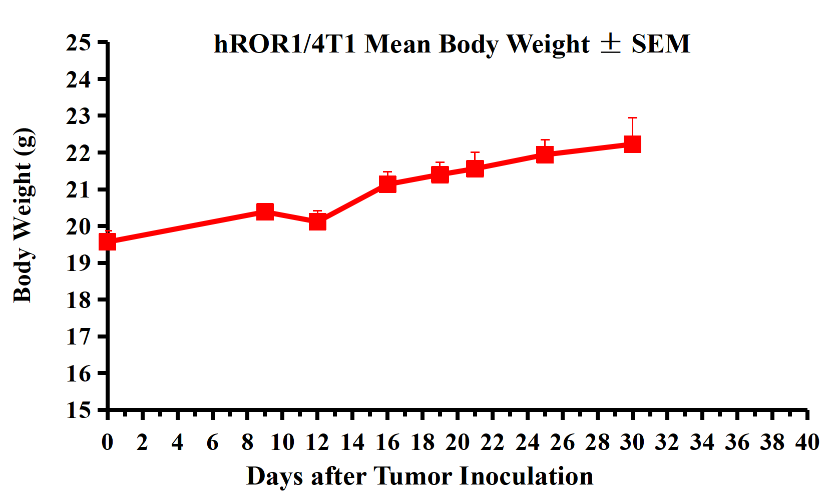 Figure 2. hROR1/4T1 Mean Body Weight ± SEM.