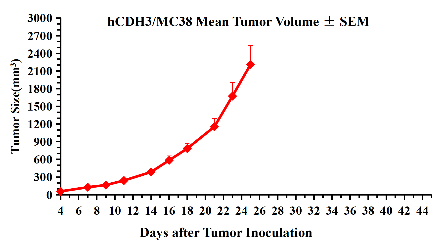 Figure 3. hCDH3/MC38 Mean Tumor Volume ± SEM .