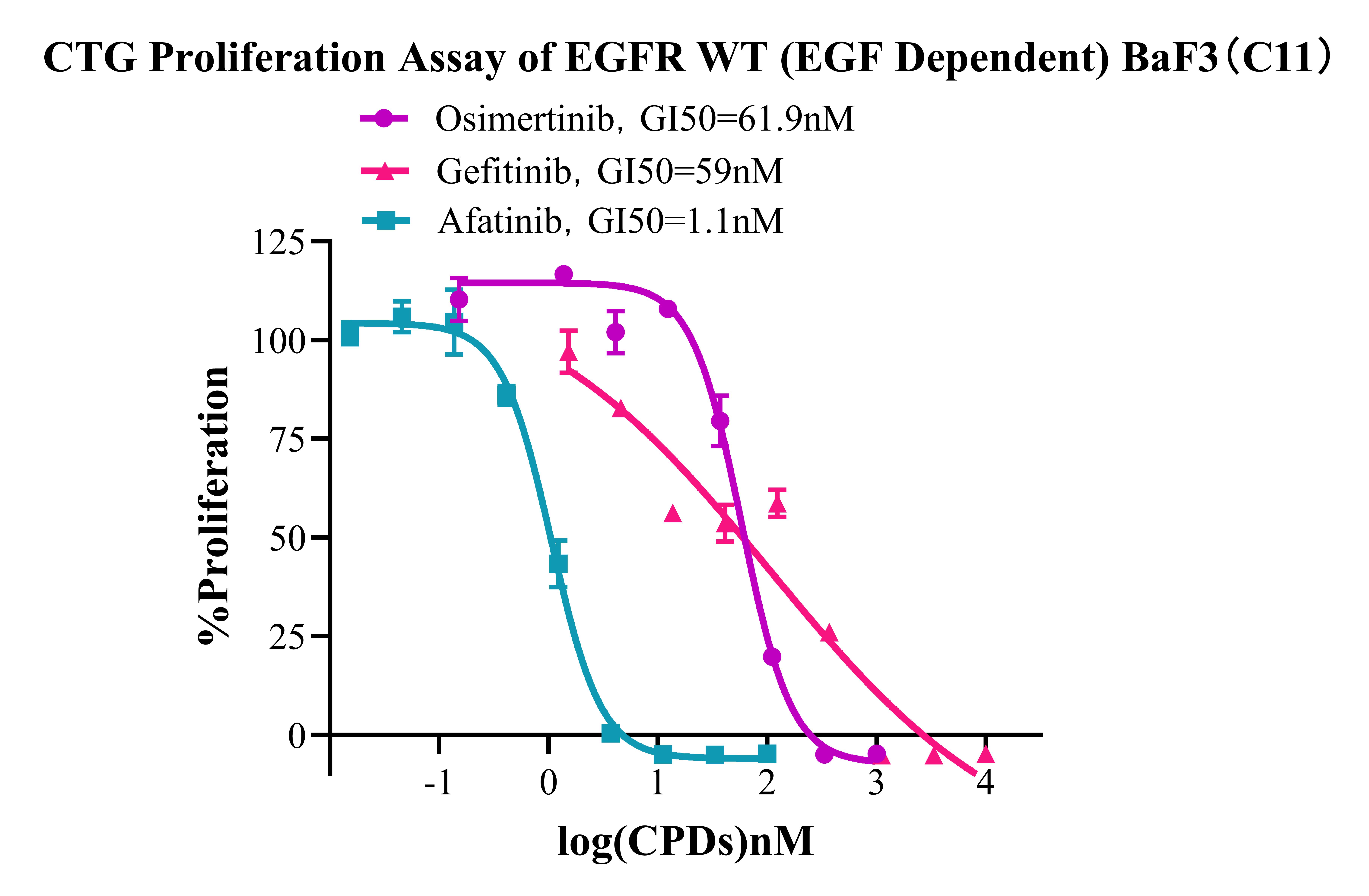 Figure 3. CTG proliferation Assay of EGFR WT (EGF Dependent) BaF3(C11). |