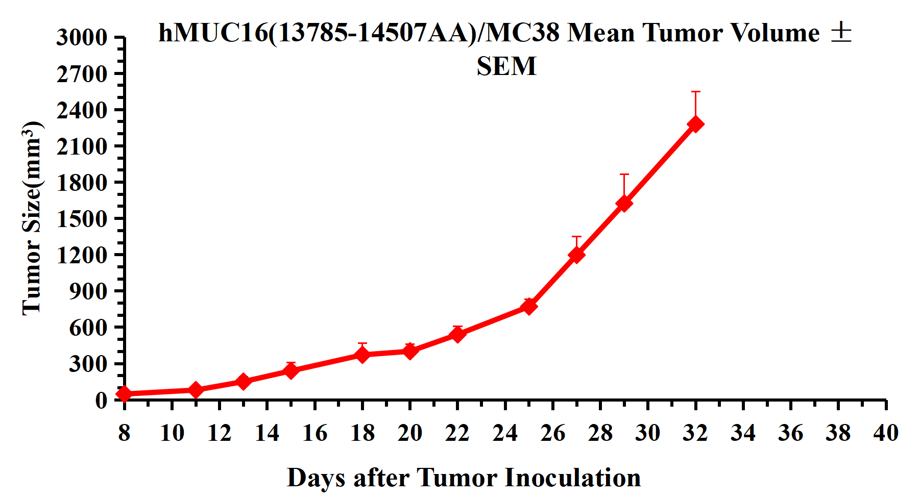 Figure 3. hMUC16(13785-14507AA)/MC38 Mean Tumor Volume ± SEM .