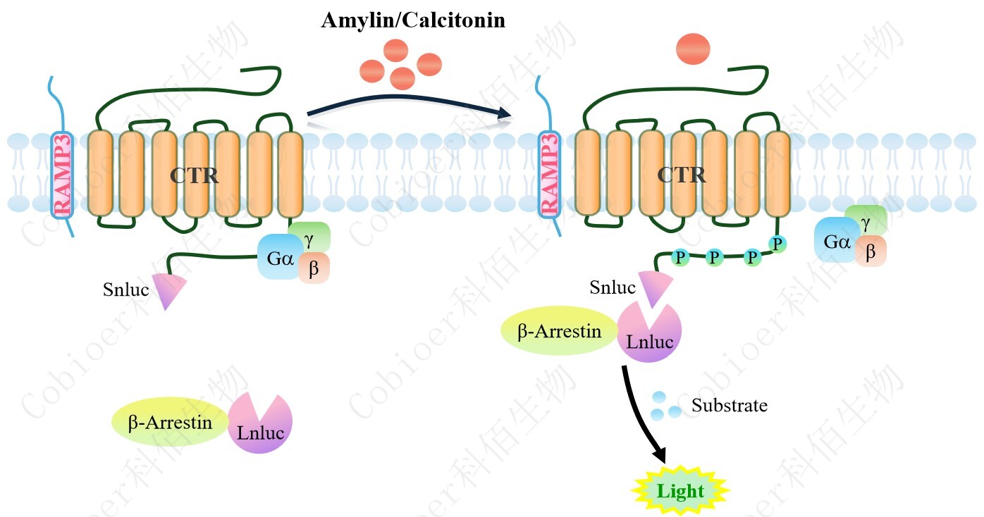 ![]() Figure 1. CTR&RAMP3 β-Arrestin CHO 細胞模型原理圖