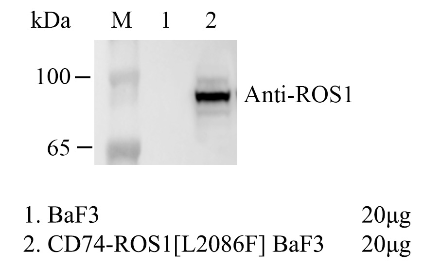 1.WB of CD74-ROS1 [L2086F] BaF3 Figure 2. WB of CD74-ROS1 [L2086F] BaF3. 2.Sanger of CD74-ROS1 [L2086F] BaF3 |