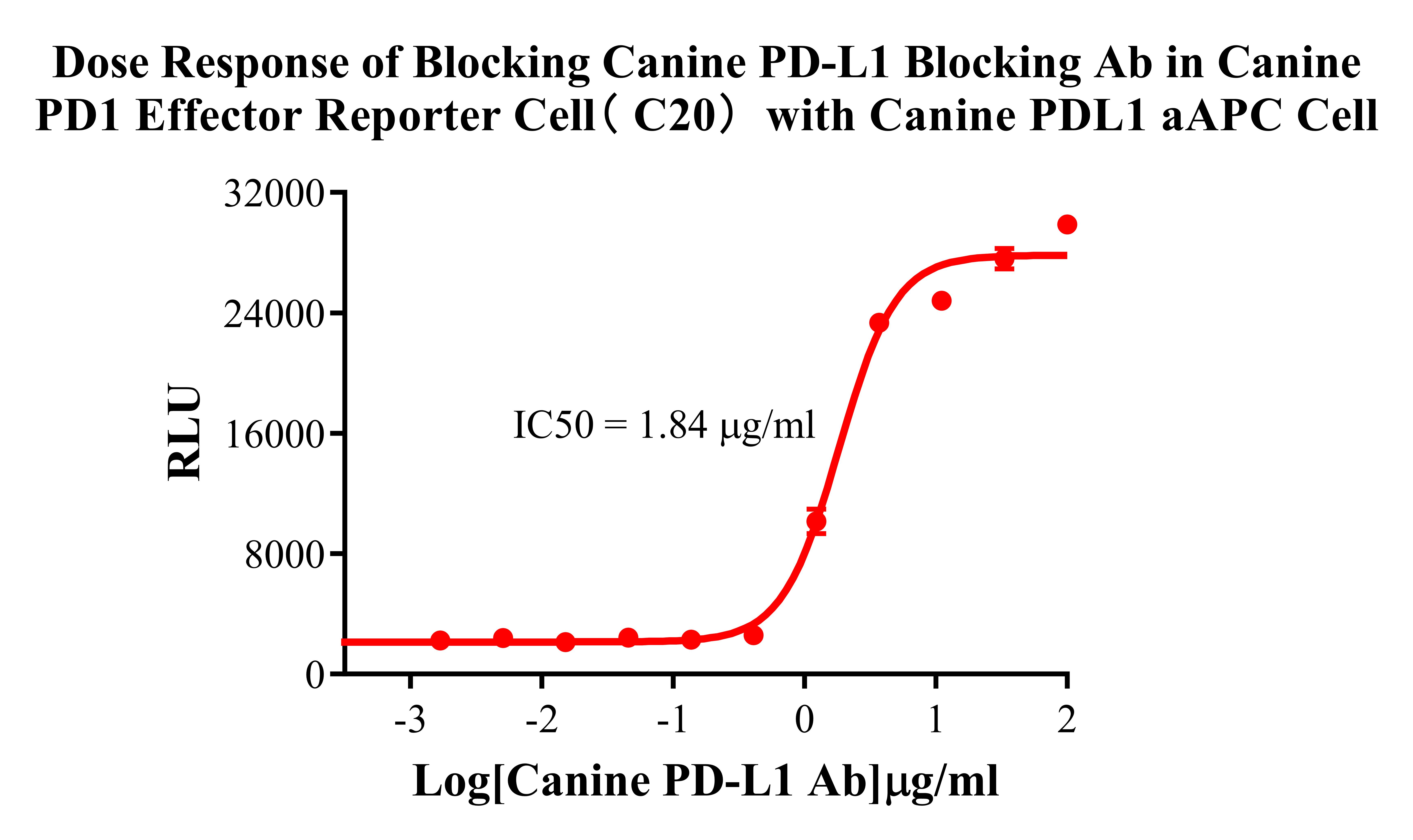 Figure 3. Dose Response of Blocking Canine PD-L1 Blocking Ab in Canine PD1 Effector Reporter Cell ( C20) with Canine PDLl aAPC Cell. |