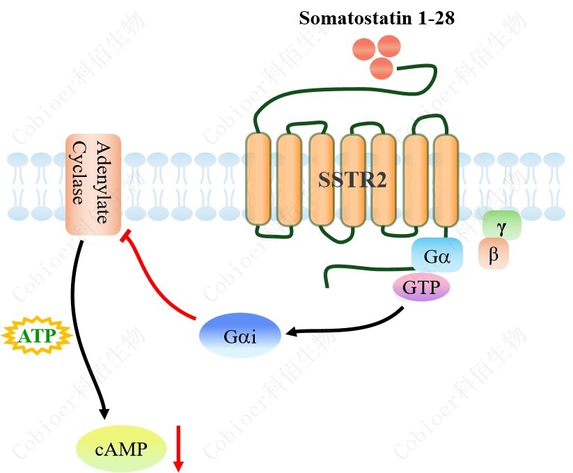 生長抑素受體(Somatostatin receptor,SSTRs)是 GPCR 超家族中的 class A 家族的成 員,共有 5 種亞型,分別為 SSTR1-SSTR5,其中 SSTR2 是唯一一種有 SSTR2a 和 SSTR2b 這 2 種異構(gòu)體的 SSTR 亞型受體蛋白。SSTR2 廣泛分布于正常組織中,如腦下垂體、胰島、 腎上腺、胸腺、胃腸道以及免疫系統(tǒng)等,在不同受體的組織,表達譜各不相同。 |