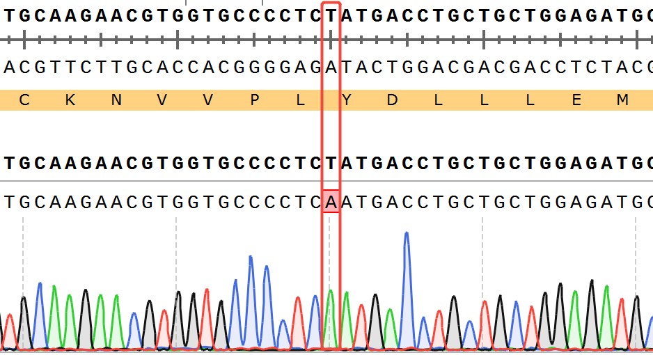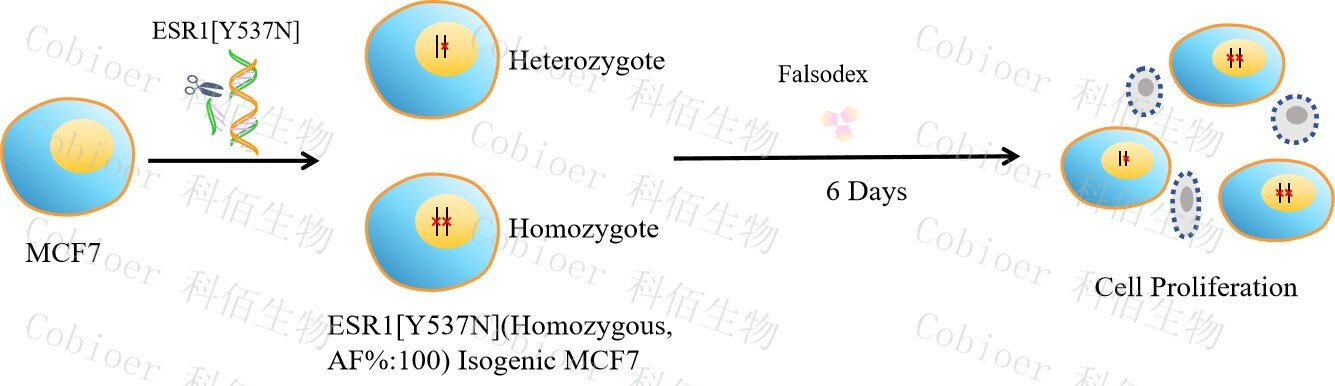 ESR1[Y537N](Homozygous,AF%:100) Isogenic MCF7 藥靶細胞,通過基 因編輯的方式將 ESR1 的 537 位氨基酸酪氨酸(Y)突變?yōu)樘於0罚∟)。![]() Figure 1. ESR1[Y537N](Homozygous,AF%:100) Isogenic MCF7 原理示意圖 |
