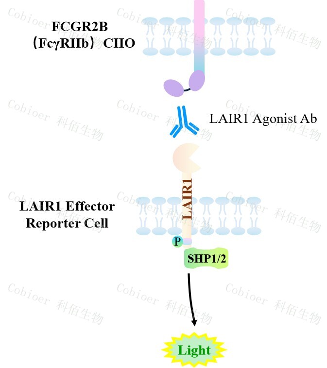 LAIR1 Effector Reporter Cell 報告基因藥靶模型很好的模擬了體內(nèi) LAIR1 的信號轉(zhuǎn)導(dǎo)過程,原理見下圖所示。![]() Figure 1.LAIR1 Effector Reporter Cell 細(xì)胞模型原理圖 |
