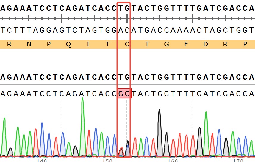 WRN[C727A](Heterozygous,AF%:50) Isogenic HCT116 藥靶細(xì)胞,通過(guò)基 因編輯的方式將 WRN 的 727 位氨基酸胱氨酸(C)突變?yōu)楸彼幔ˋ)。![]() Figure 1. WRN[C727A](Heterozygous,AF%:50) Isogenic HCT116 原理示意圖 |