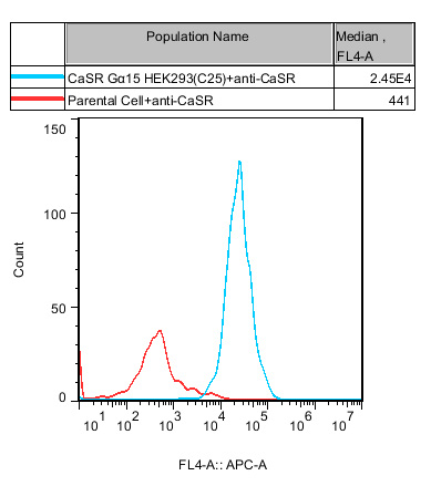 CaSR Gα15 HEK293 藥靶模型很好的模擬了體內(nèi) CaSR 的信號轉(zhuǎn)導(dǎo)過程,原理見下圖所示。![]() Figure 1. CaSR Gα15 HEK293 細(xì)胞模型原理圖 |