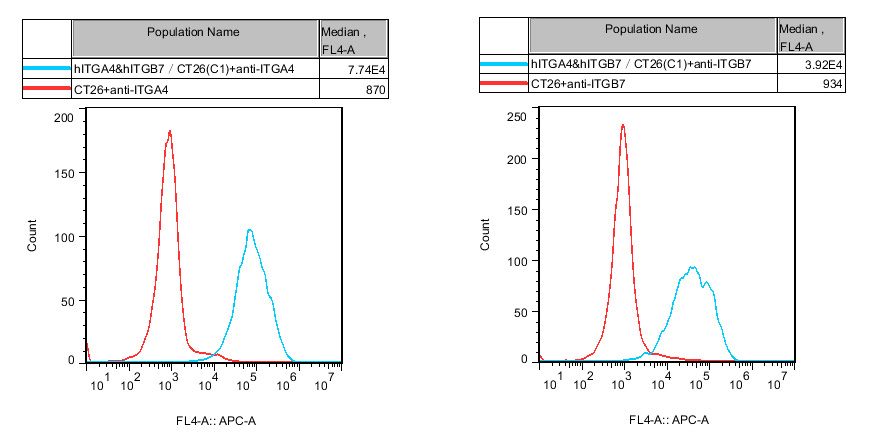 IV. Representative Data![]() Figure 1. Recombinant hITGA4&hITGB7/CT26 stably expressing ITGA4&ITGB7. |