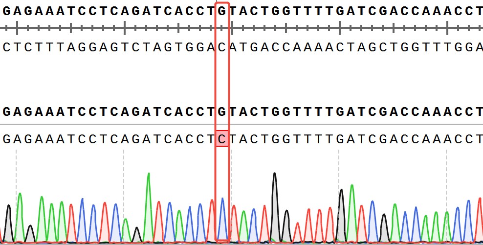 ![]() Figure 2. Sanger of WRN[C727S](Homozygous,AF%:100) Isogenic HCT116 ![]() Figure 3. A:HCT116 Parental Cell;B:WRN[C727S](Homozygous,AF%:100) Isogenic HCT116 通道2 藍色微滴代表WRN[C727S]突變陽性,通道2 綠色微滴代表該位點為陰性野生型 ![]() Figure 4. CTG Proliferation Assays of WRN[C727S](Homozygous,AF%:100)Isogenic HCT116(C25). ![]() Figure 5. CTG Proliferation Assays of WRN[C727S](Homozygous,AF%:100) Isogenic HCT116(C25). |