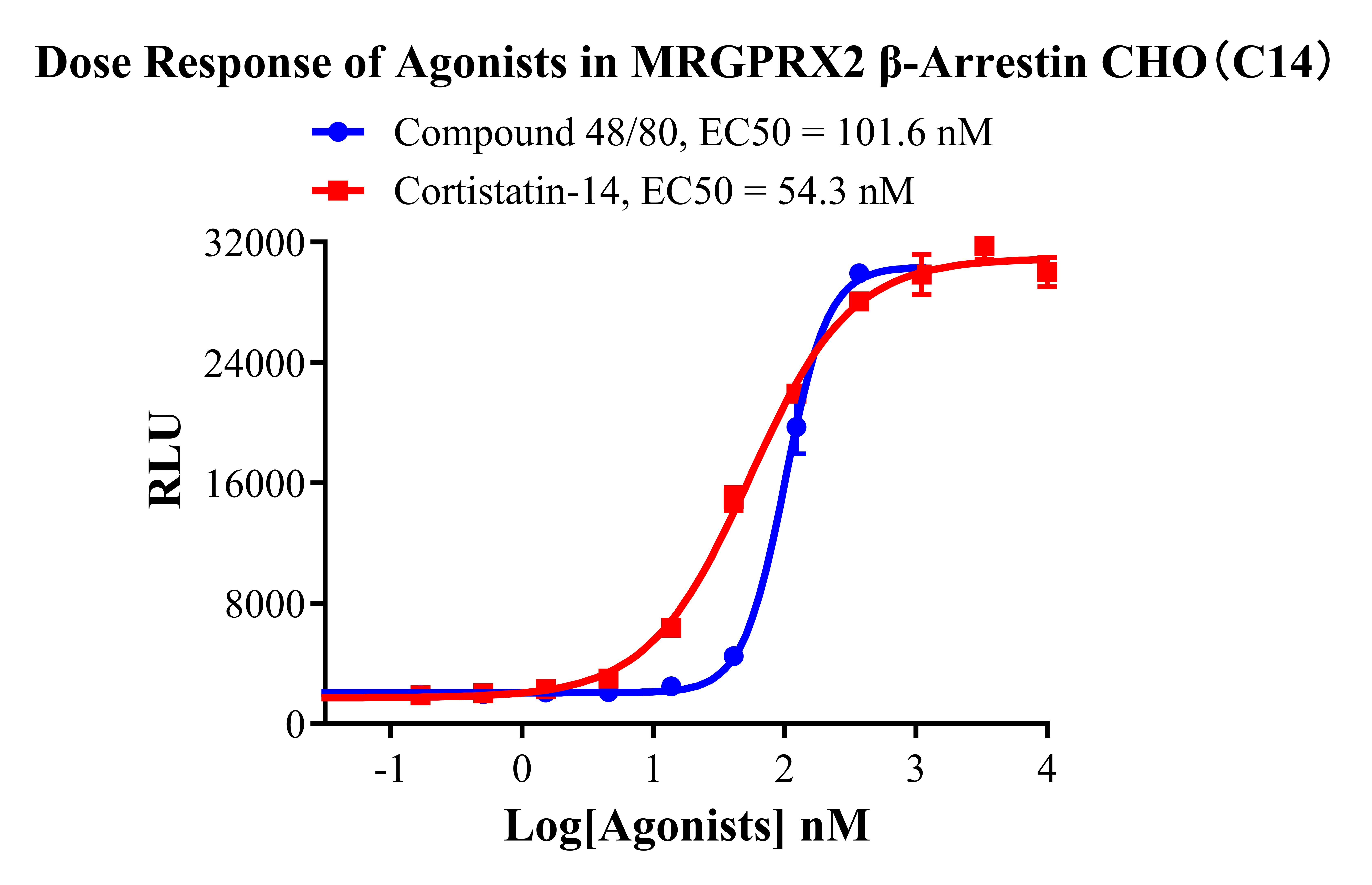 V. Representative Data![]() Figure 2. Recombinant MRGPRX2 β-Arrestin CHO stably expressing MRGPRX2. ![]() Figure 3. Dose Response of Agonists in MRGPRX2 β-Arrestin CHO(C14) . |