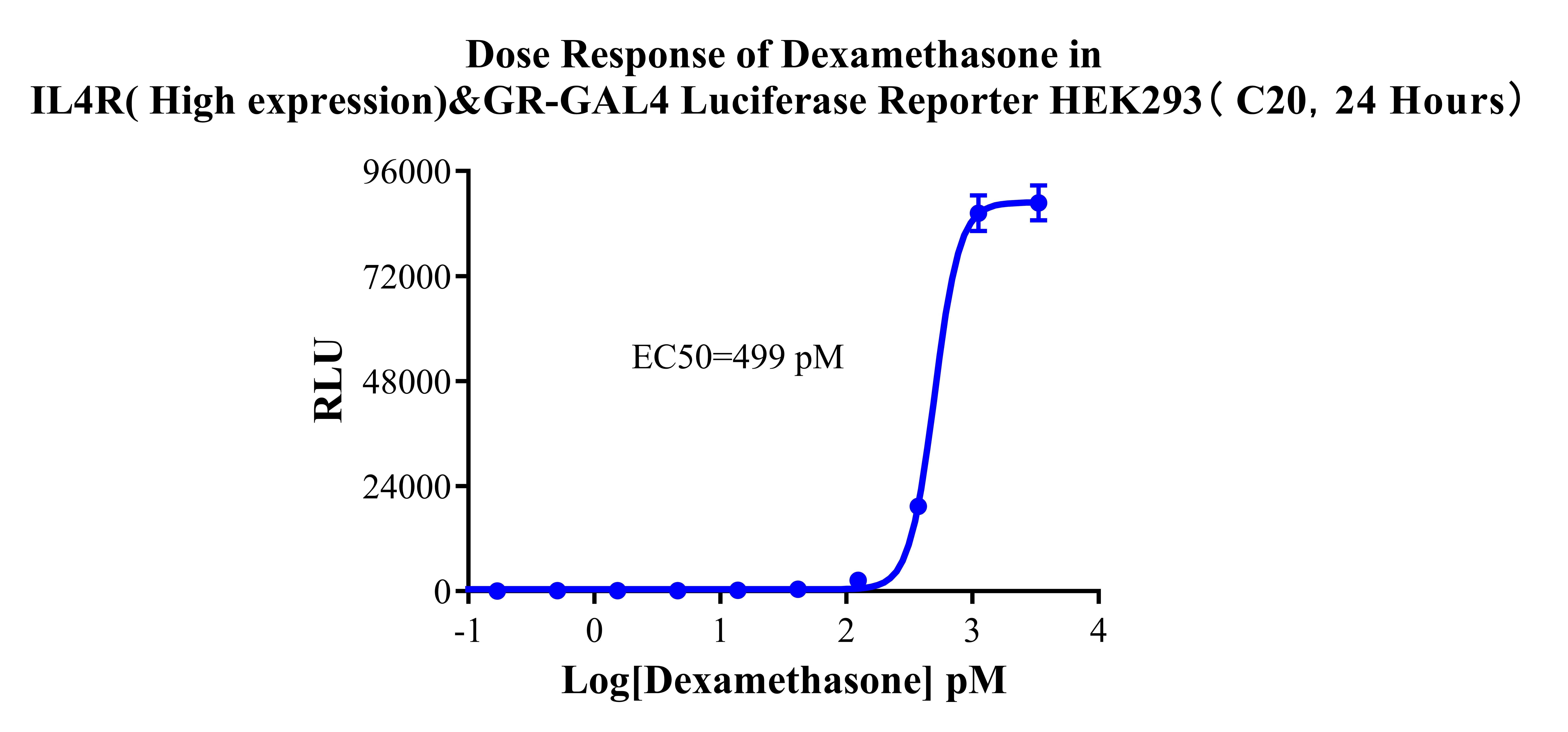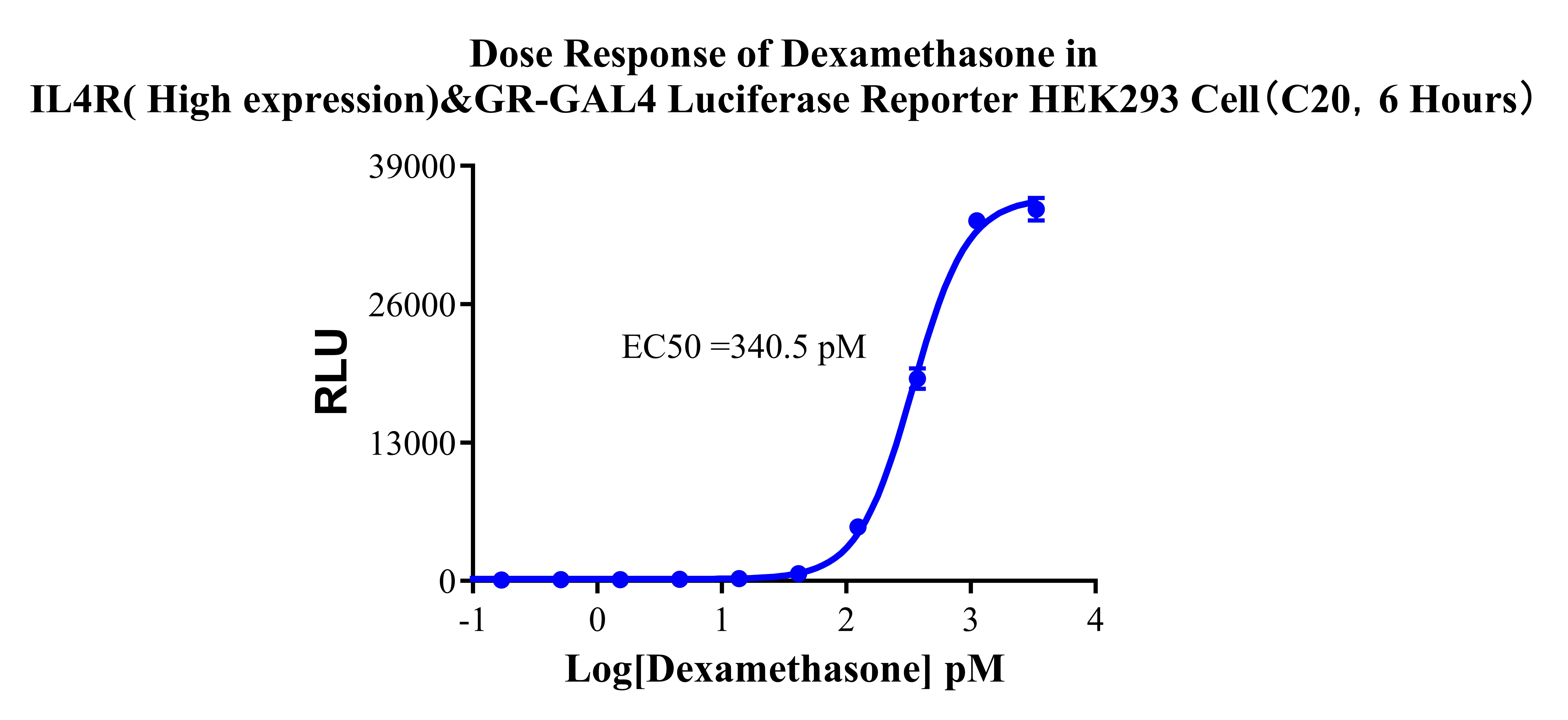 ![]() Figure 2. Recombinant IL4R( High expression)&GR-GAL4 Luciferase Reporter HEK293 stably expressing IL4R. ![]() |