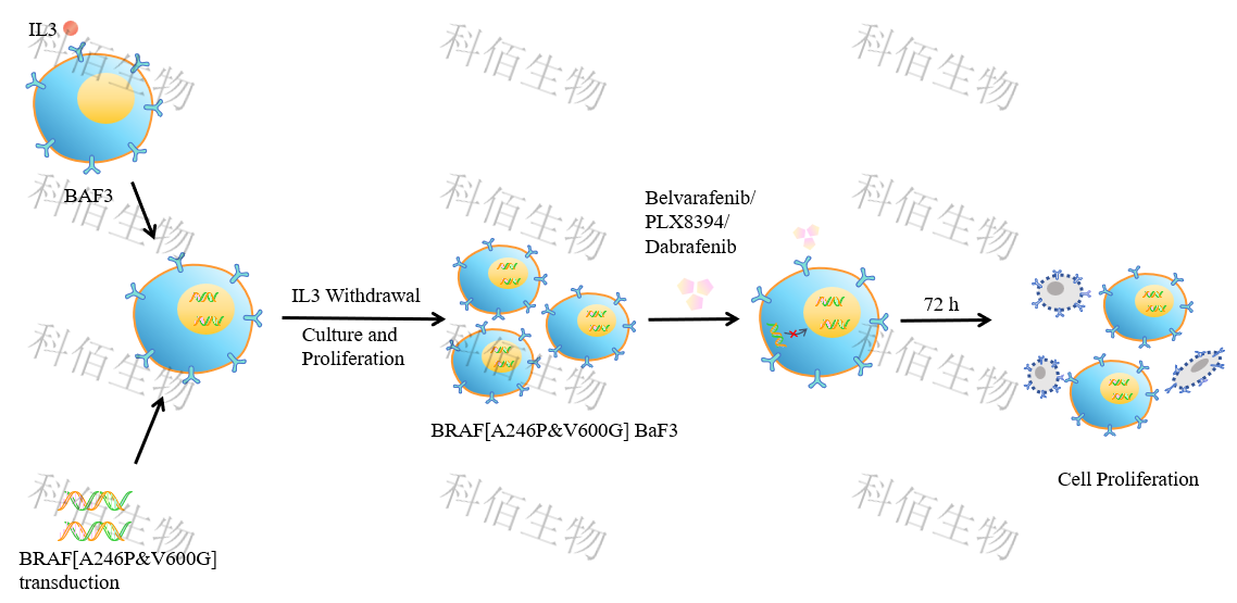 Figure 1. BRAF[A246P&V600G] BaF3 細(xì)胞的構(gòu)建原理圖
