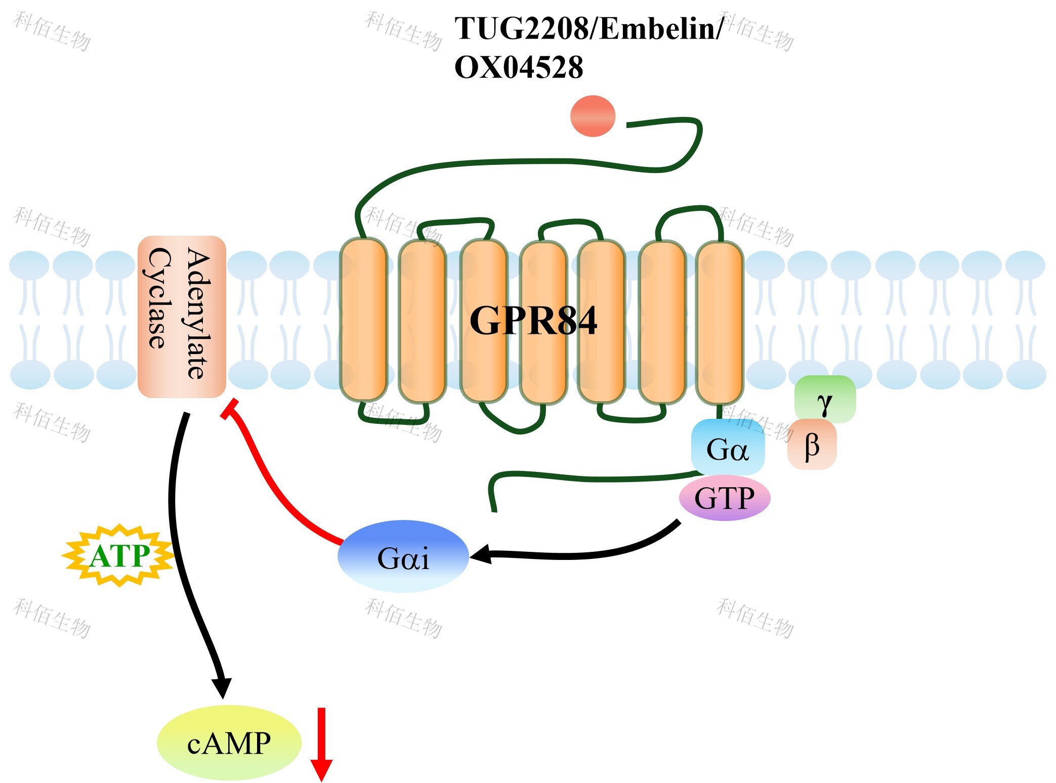 | GPR84 是一種在巨噬細(xì)胞和中性粒細(xì)胞等髓系免疫細(xì)胞中高表達(dá)的 A 類 GPCR,正常 狀態(tài)下表達(dá)水平較低,但在脂多糖(LPS)或促炎細(xì)胞因子刺激下顯著上調(diào),被視為連接 脂肪酸代謝與先天性免疫應(yīng)答的關(guān)鍵節(jié)點(diǎn)。GPR84 的內(nèi)源性配體主要為碳鏈長(zhǎng)度 C9-C14 的中鏈脂肪酸(以癸酸和月桂酸為代表),合成激動(dòng)劑 6-OAU 和 DL-175 常用于實(shí)驗(yàn)研究。 在信號(hào)轉(zhuǎn)導(dǎo)層面,GPR84 主要通過偶聯(lián)抑制性 G 蛋白(Gi/o)發(fā)揮功能:活化后抑制腺苷 酸環(huán)化酶、降低胞內(nèi)環(huán)磷酸腺苷(cAMP)水平,同時(shí)其釋放的 Gβγ亞基可激活磷脂酶 C (PLC)、磷脂酰肌醇 3-激酶(PI3K)及絲裂原活化蛋白激酶(MAPK/ERK)通路,最終 促進(jìn) TNFα、IL-6 等促炎因子釋放,并增強(qiáng)中性粒細(xì)胞的趨化、黏附及活性氧產(chǎn)生,從而 在炎癥性腸病、器官纖維化和代謝綜合征等病理過程中發(fā)揮促炎推動(dòng)作用。 | |