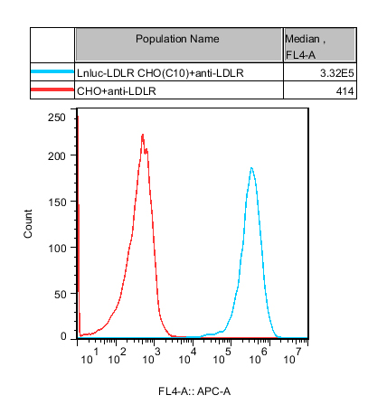 Lnluc-LDLR CHO 藥靶模型很好的模擬了體內(nèi) LDLR 的信號轉導過程,原理見下圖所示。 |