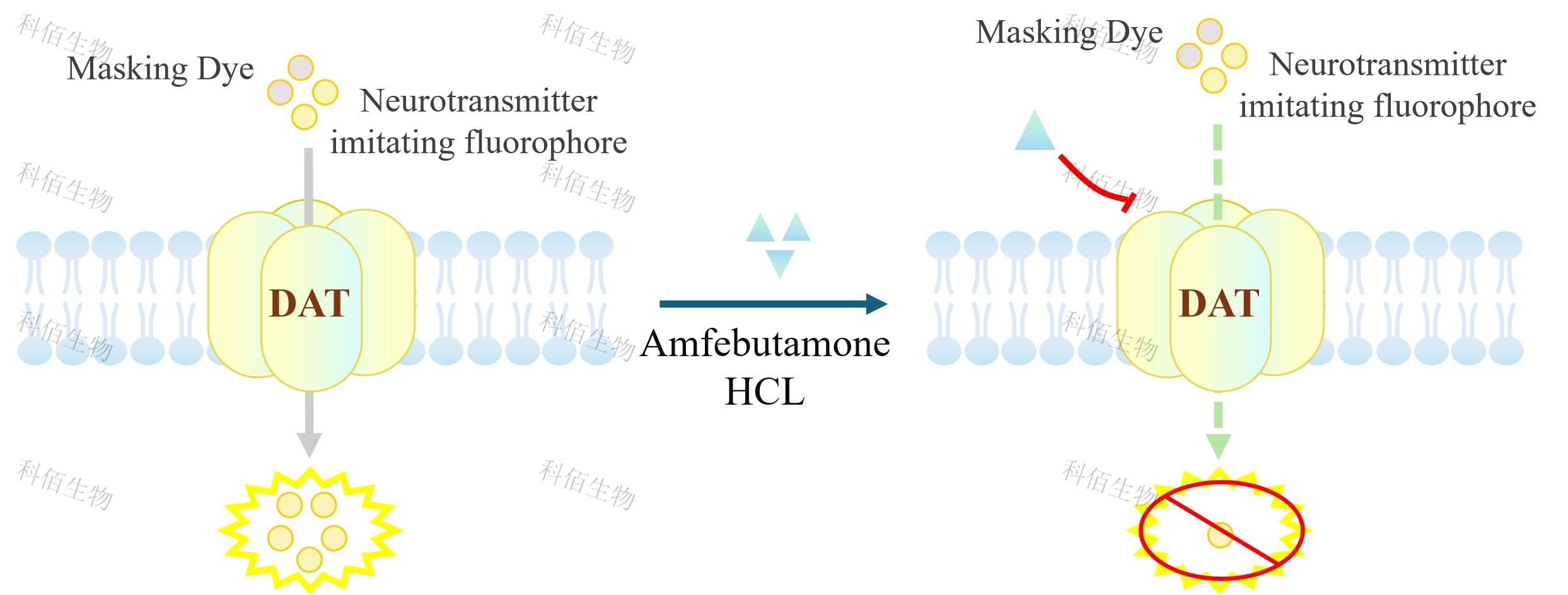 DAT(SLC6A3) CHO 藥靶模型很好的模擬了體內轉運蛋白調節(jié)神經元信號傳導,原理見下圖所示。