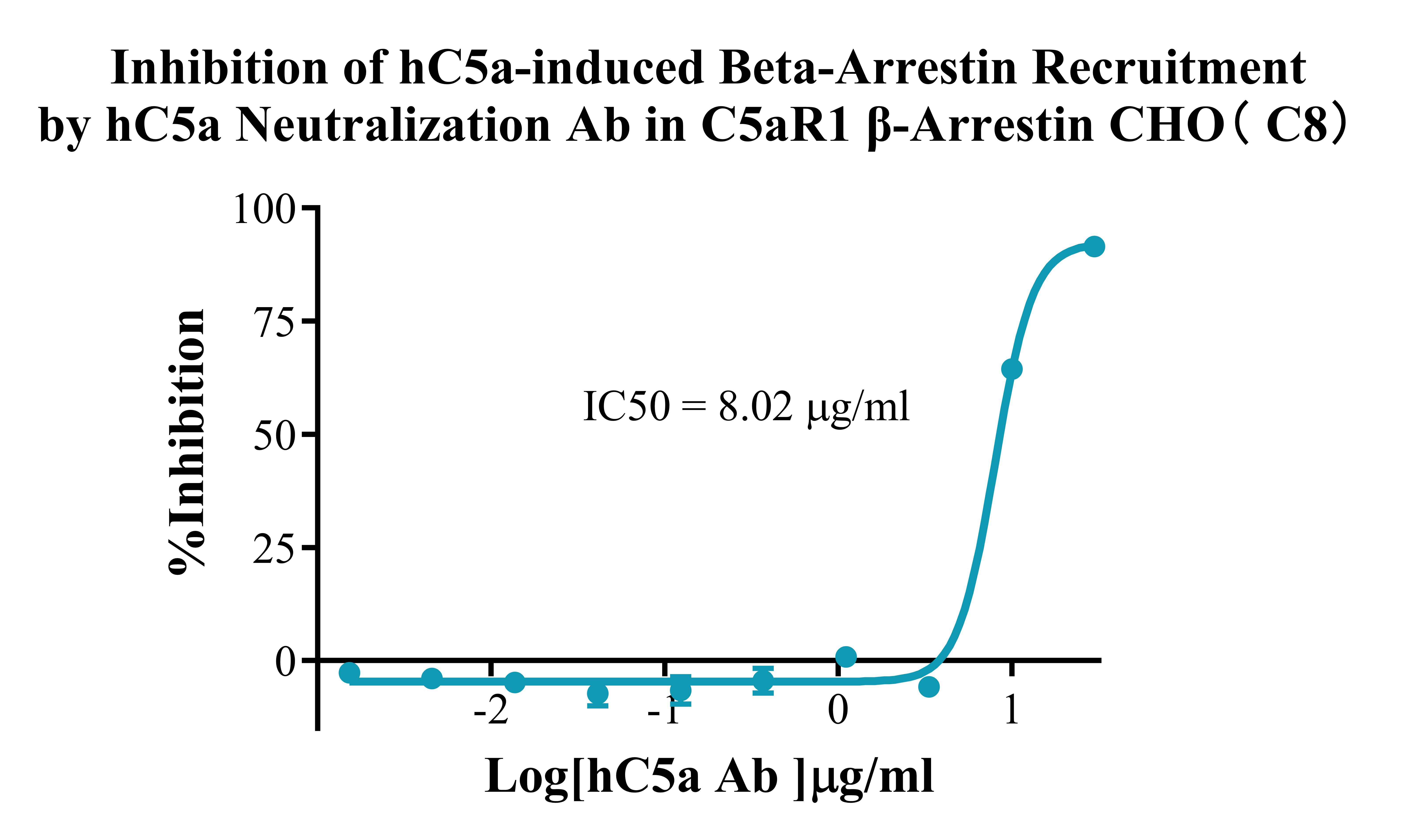 Figure 4. Inhibition of hC5a-induced Beta-Arrestin Recruitment by hC5a Neutralization Ab in C5aR1 Beta-Arrestin CHO(C8). |