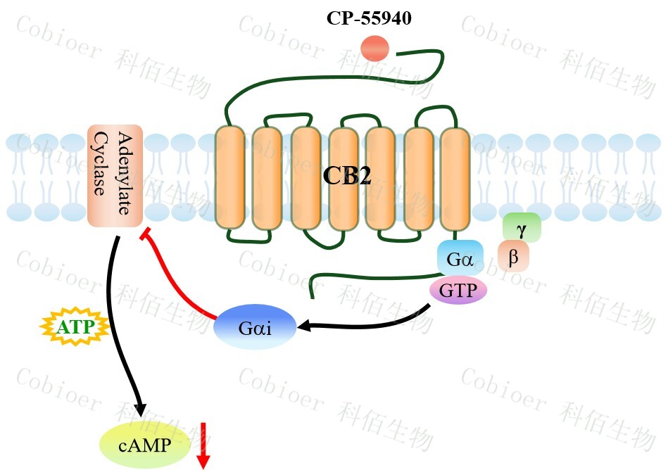 cAMP 在 G 蛋白偶聯(lián)受體(GPCR)信號轉導中是一種關鍵的第二信使。當配體結合到 GPCR,構象發(fā)生變化,激活受體接著激活 G 蛋白,Gi 的激活導致腺苷酸環(huán)化酶調控 cAMP 的下調。CB2 CHO 藥靶模型很好的模擬了體內(nèi) CB2 的信號轉導過程,原理見下圖所示。![]() Figure 1. CB2 CHO 細胞模型原理圖 |
