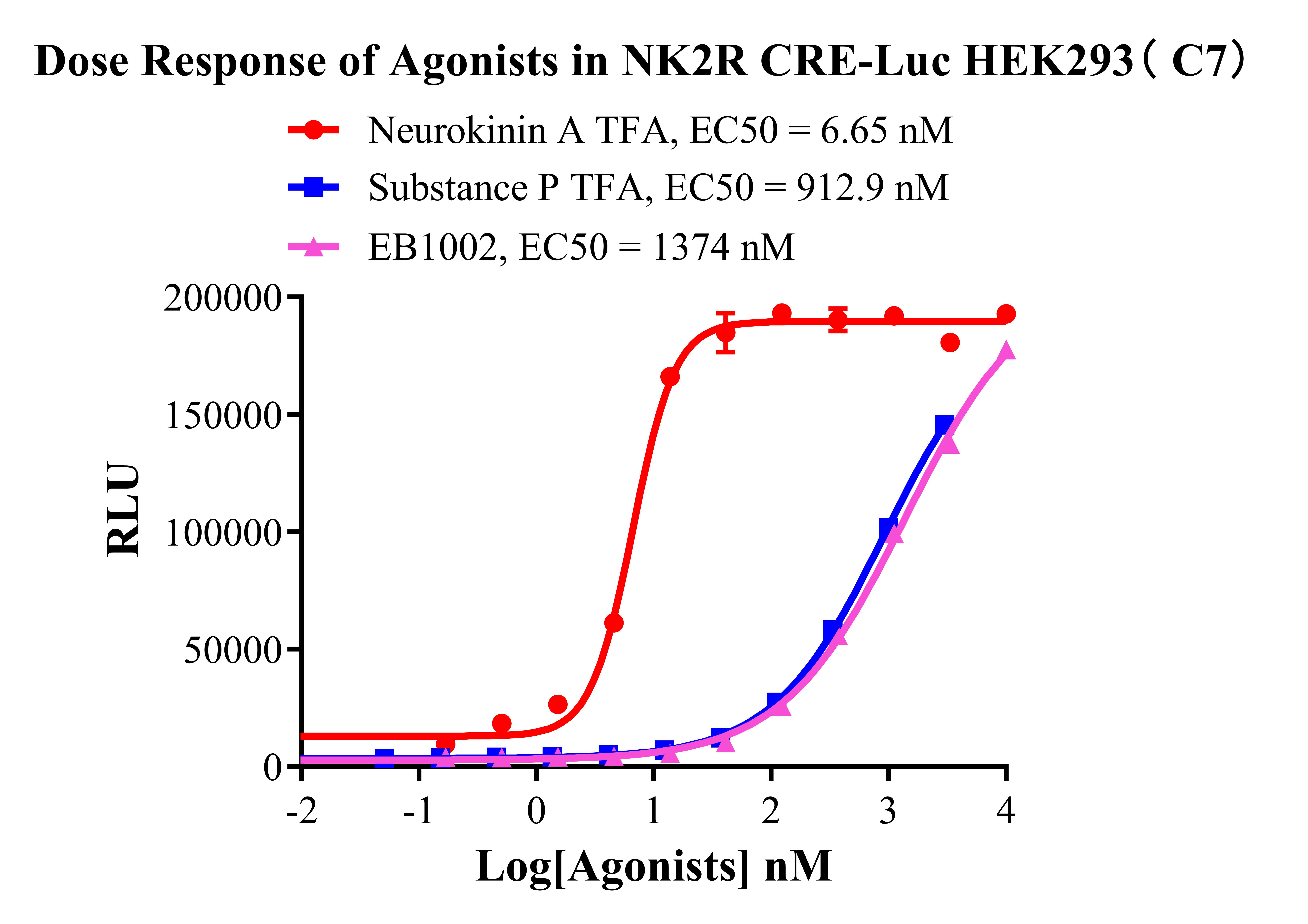Figure 1. Dose Response of Agonists in NK2R CRE-Luc HEK293( C7). |