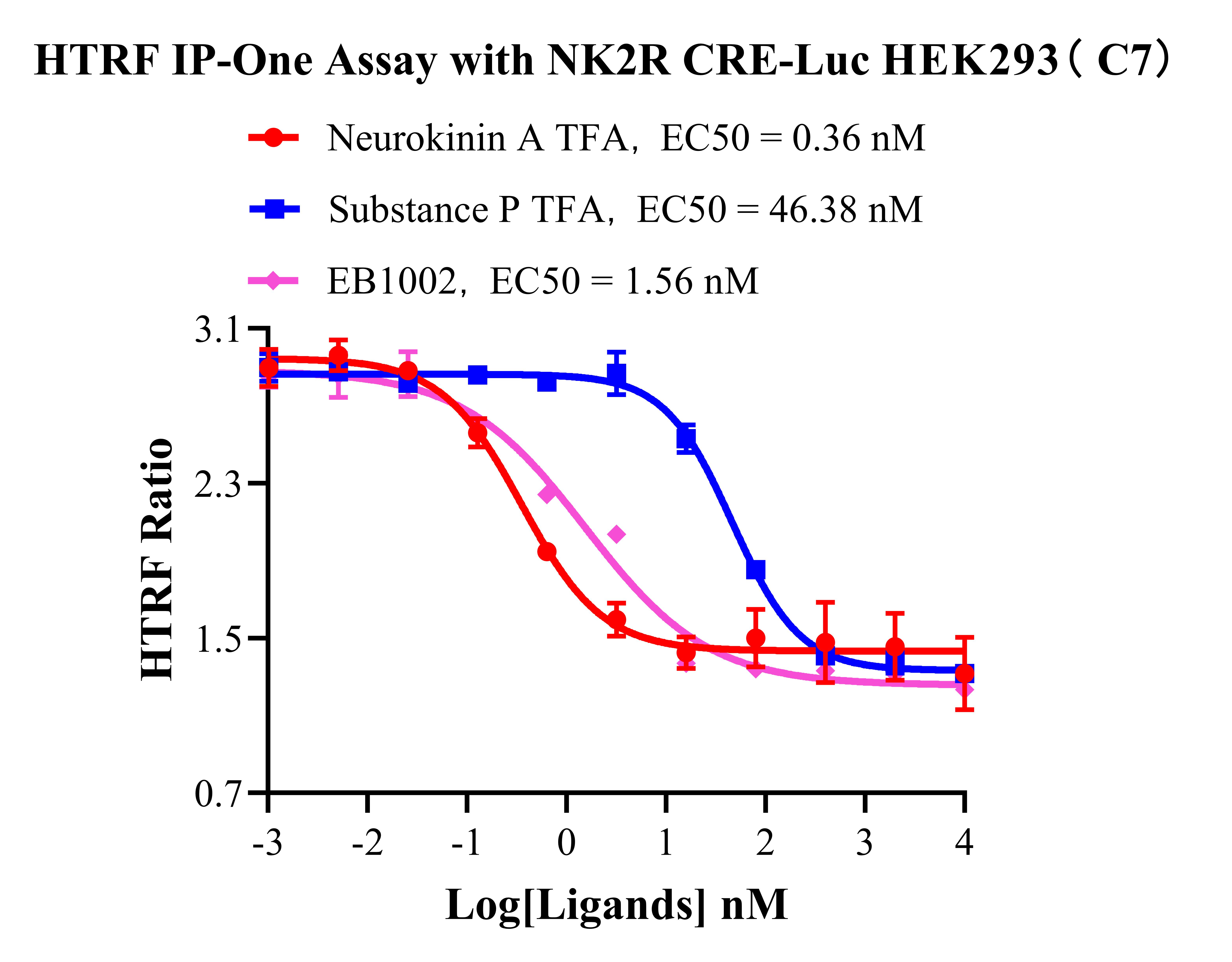 | NK2R CRE-Luc HEK293 細胞藥靶模型很好的模擬了體內(nèi) NK2R 的信號轉(zhuǎn)導(dǎo)過程。 |