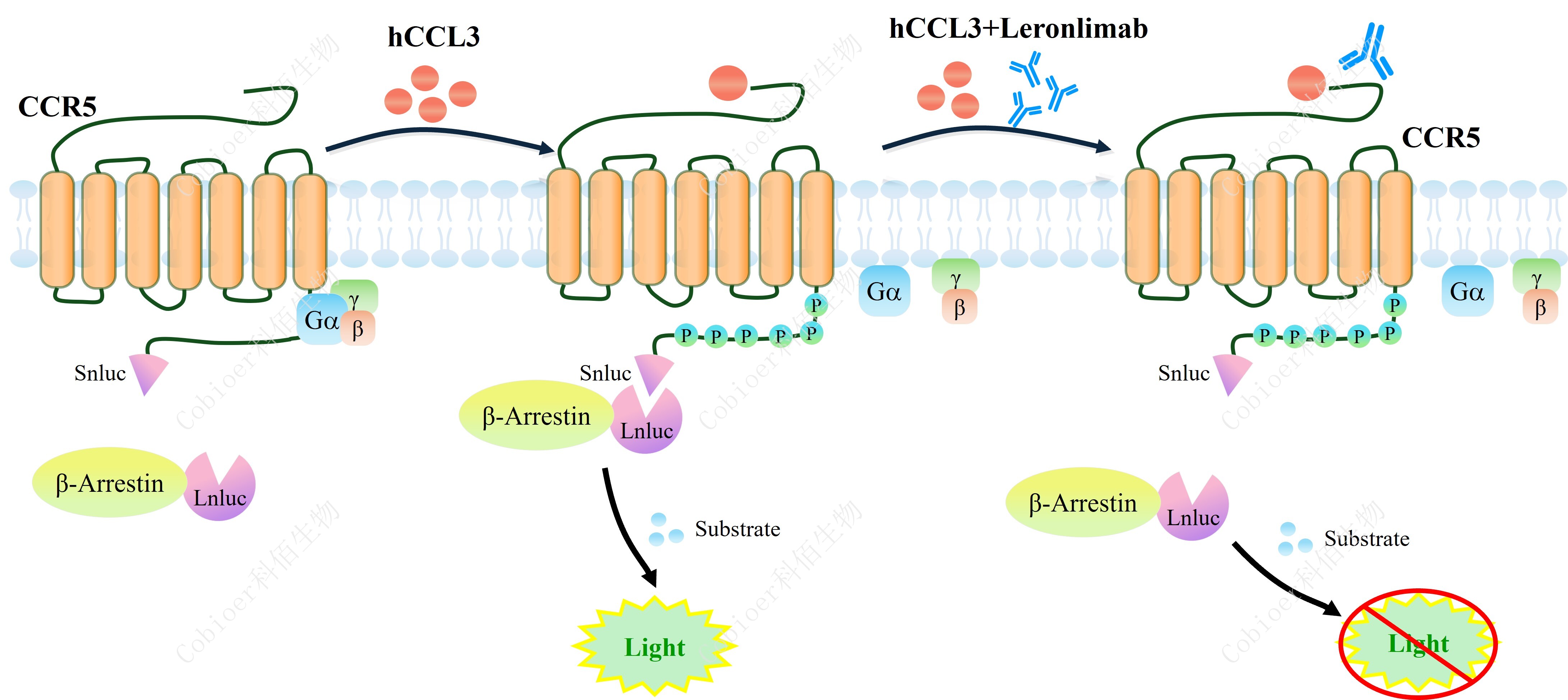 報(bào)告基因細(xì)胞模型可以很好的反映分子作用機(jī)制,同時(shí)具備更小的變異性和更好的可 操作性,已被中檢院及藥企廣泛應(yīng)用于抗體藥物生物活性的檢定,對(duì)于藥物研發(fā)、質(zhì)量控 制、批次放行都有重要意義。 CCR5 β-Arrestin CHO 報(bào)告基因藥靶模型很好的模擬了體內(nèi) CCR5/β-Arrestin 的信號(hào)轉(zhuǎn)導(dǎo)過(guò)程,原理見(jiàn)下圖所示。![]() Figure 1. CCR5 β-Arrestin CHO 細(xì)胞模型原理圖