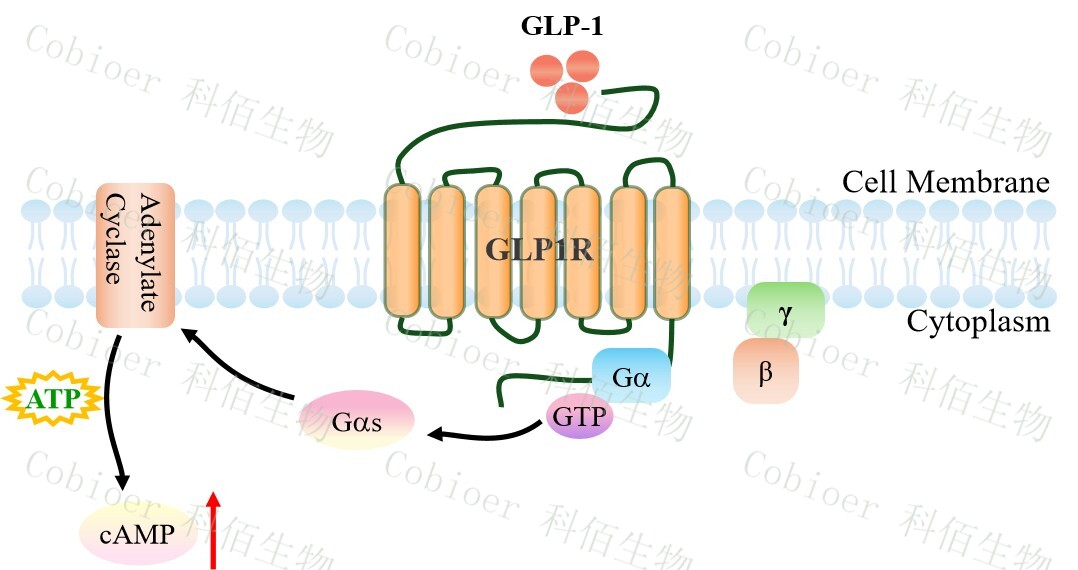 | GLP-1R 與其他四種胰高血糖素受體(GCGR、GLP-2R、GIPR 和 GHRHR)一起屬于 促胰液素 (B1 類(lèi)) GPCR 家族,其內(nèi)源性配體是肽激素。 B1 類(lèi) GPCRs 在 N 端具有一個(gè)較 大的、結(jié)構(gòu)保守的胞外結(jié)構(gòu)域(ECD),由 120-160 個(gè)殘基組成,形成三層 α-β-β-α 折疊, 并由三個(gè)層間二硫鍵穩(wěn)定。 GLP-1R 的內(nèi)源性配體是 GLP-1 (7-36)和 GLP-1 (7-37),它們是胰高血糖素原翻 譯后加工的產(chǎn)物。GLP-1R 主要通過(guò) Gαs/cAMP 通路發(fā)出信號(hào),直接導(dǎo)致葡萄糖誘導(dǎo)的胰 島素顆粒分泌;但有證據(jù)表明 GLP-1R 可與 Gαq 和其他 G 蛋白偶聯(lián);GLP -1R 激活后,C 末端發(fā)生磷酸化,進(jìn)一步募集β-抑制蛋白,導(dǎo)致受體內(nèi)化和脫敏。 |