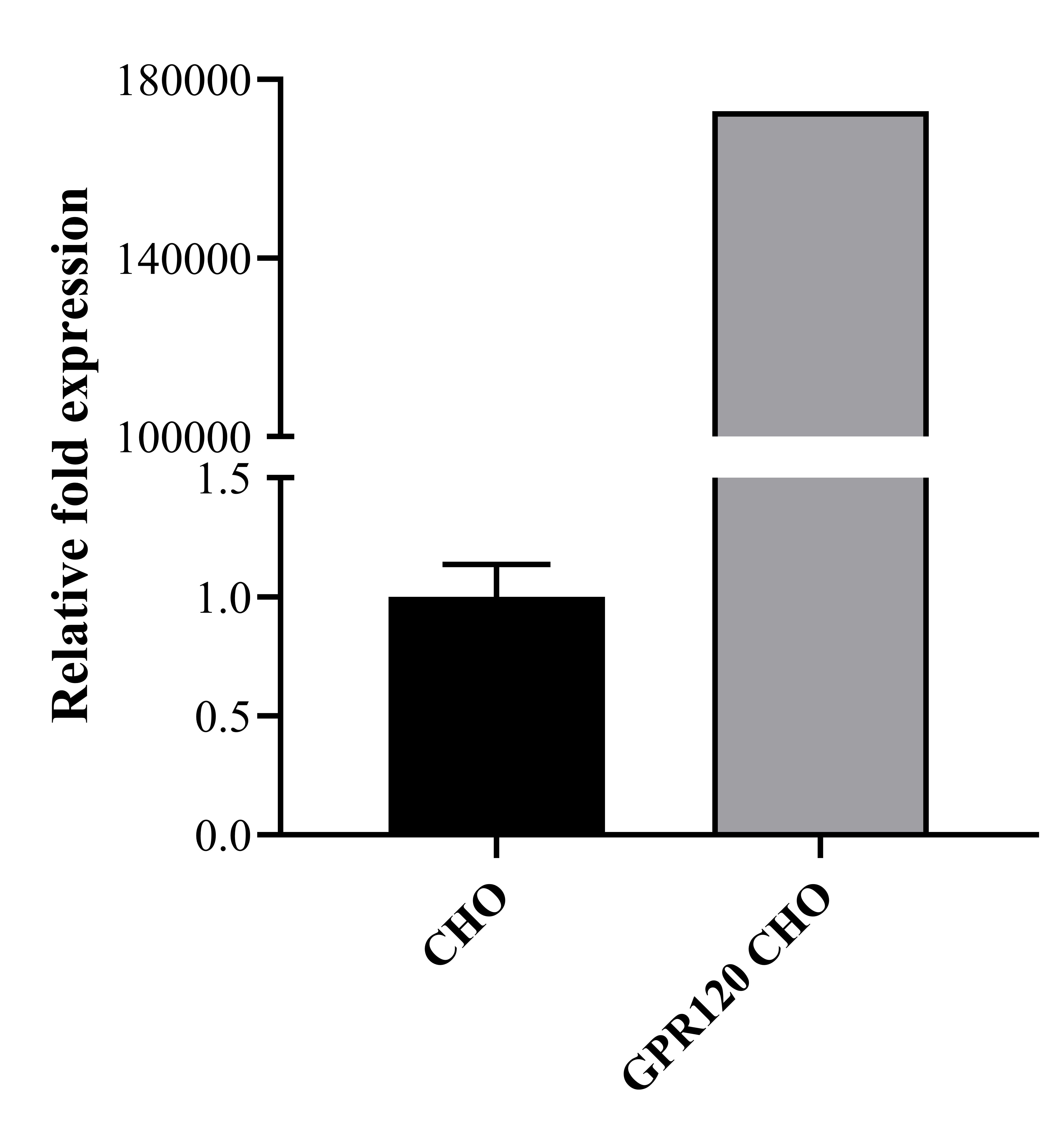 GPR120 與配體結合,導致 Gαq 亞基的激活,觸發(fā) PLC-γ,從而產(chǎn)生兩個第二信使: IP3 和 DAG,它們參與細胞內鈣動員。GPR120 CHO 細胞藥靶模型很好的模擬了體內 GPR120 的信號轉導過程,原理見下圖所示。![]() Figure 1. GPR120 CHO 細胞模型原理圖 |