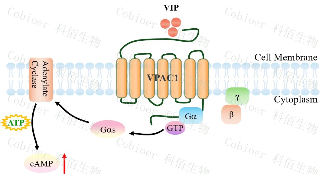 | PACAP/VIP 受體家族屬于 B 類 G 蛋白偶聯(lián)受體(GPCR),包含 PAC1R (PAC1)、 VPAC1R (VPAC1) 和 VPAC2R (VPAC2) 三個亞型,共同響應(yīng)神經(jīng)肽 PACAP(垂體腺苷酸 環(huán)化酶激活肽)和 VIP(血管活性腸肽)的調(diào)控,通過激活 Gs/cAMP-PKA 核心信號軸 (部分亞型偶聯(lián) Gq/PLC)廣泛協(xié)調(diào)神經(jīng)內(nèi)分泌、代謝穩(wěn)態(tài)與免疫調(diào)節(jié)。 VPAC1 受體(血管活性腸肽受體 1 型) 作為 B 類 GPCR 家族的核心成員,主要在免 疫細(xì)胞、胃腸道及呼吸道高表達(dá),以內(nèi)源性配體血管活性腸肽(VIP) 和垂體腺苷酸環(huán)化 酶激活肽(PACAP) 為高親和力激活源,通過專一性偶聯(lián) Gs/cAMP-PKA 信號軸發(fā)揮關(guān)鍵 生理調(diào)控作用。VPAC1 的激活可抑制巨噬細(xì)胞炎癥因子釋放(如 TNF-α、IL-12)、促進(jìn)腸 道平滑肌舒張與上皮屏障修復(fù)、擴(kuò)張支氣管并抑制黏液分泌,從而維持免疫耐受、胃腸動 力及呼吸穩(wěn)態(tài)。VPAC1 功能缺陷已被證實(shí)與炎癥性腸病(IBD)、哮喘和類風(fēng)濕關(guān)節(jié)炎的 病理進(jìn)程密切相關(guān),而靶向激動劑在急性呼吸窘迫綜合征(ARDS)與 IBD 治療中已展現(xiàn) 顯著療效,凸顯其作為免疫-黏膜穩(wěn)態(tài)核心調(diào)節(jié)器的治療價值。 |