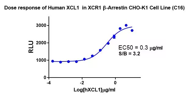 Figure 2. Dose response of Human XCL1 in XCR1 β-Arrestin CHO-K1 Cell Line (C16). |