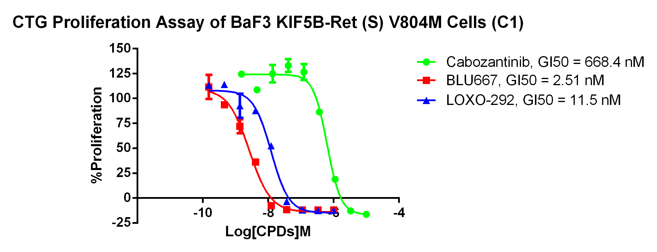 Figure 4. CTG Proliferation Assay of BaF3 KIF5B-Ret(S) V804M Cells (C1). |
