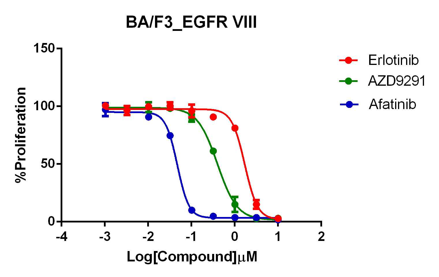 Figure 2. Anti-proliferation assay of three reference compounds on the EGFR VIII/BaF3 Stable Cell Line . |