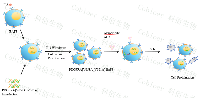 PDGFRA[V658A_V561A] BaF3 藥靶細(xì)胞,通過轉(zhuǎn)導(dǎo)突變狀態(tài) PDGFRA[V658A_V561A] 基因到 BaF3 細(xì)胞系中,穩(wěn)定表達(dá)人 突變形態(tài)下的PDGFRA[V658A_V561A] 基因。