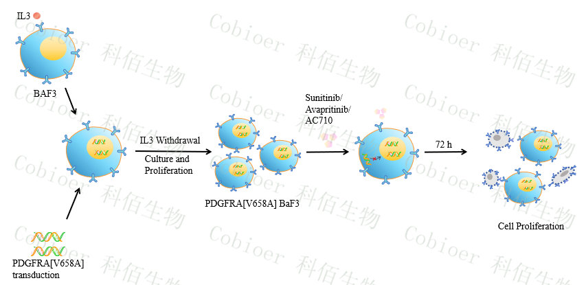 PDGFRA[V658A] BaF3 藥靶細(xì)胞 , 通過轉(zhuǎn)導(dǎo)突變狀態(tài)的 PDGFRA[V658A] 基因到 BaF3 細(xì)胞系中,穩(wěn)定表達(dá)人突變形態(tài)下的 PDGFRA[V658A] 基因。