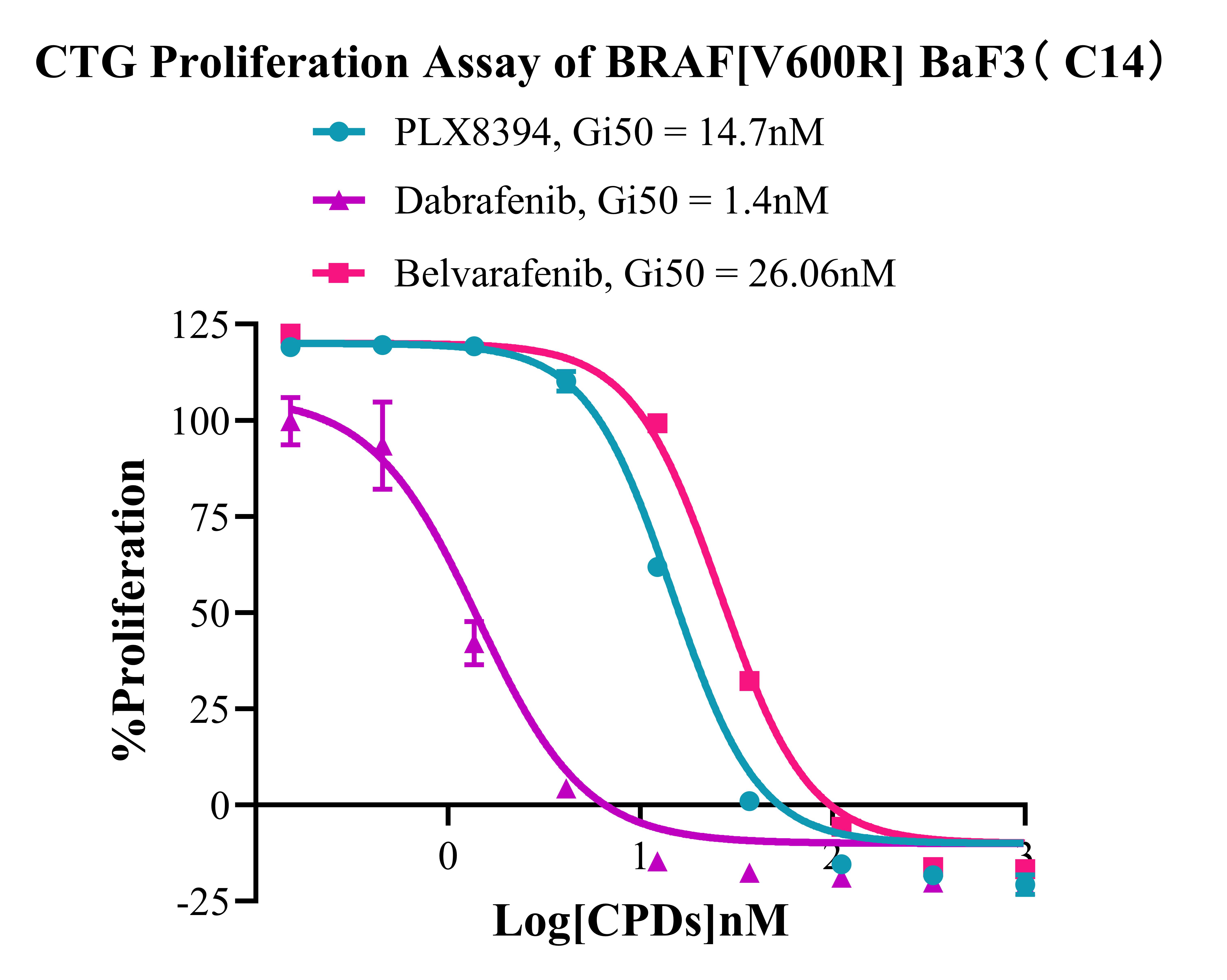 Figure 4. CTG Proliferation Assay of BRAF [V600R] BaF3 (C14). |