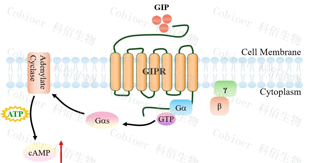 葡萄糖依賴性胰島素促泌多肽(又稱抑胃肽,GIP)、胰高血糖素樣肽-1(GLP-1)和胰高血糖素(GCG)是負(fù)責(zé)葡萄糖穩(wěn)態(tài)的肽激素。它們的同源受體 GIPR、GLP-1R 和GCGR 屬于 B1 類 G 蛋白偶聯(lián)受體 (GPCR) 家族。胃抑制多肽受體(GIPR)是 GIP 的受體,是一種具有 7 個(gè)跨膜結(jié)構(gòu)域的 G 蛋白偶聯(lián)受體。它與 GIP 激素結(jié)合,以葡萄糖誘導(dǎo)的方式增強(qiáng)胰腺 β 細(xì)胞胰島素的合成和分泌。胰腺 β 細(xì)胞上的 GIPR 在信號(hào)級(jí)聯(lián)中起著關(guān)鍵作用,導(dǎo)致血糖水平升高時(shí)胰島素釋放。