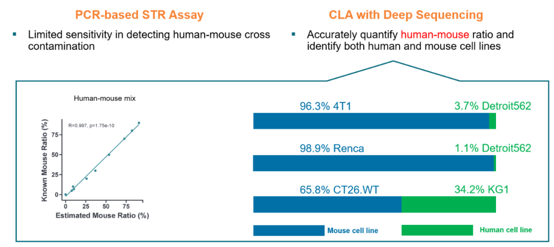 人-小鼠混合樣本定量(如96.3% 4T1 + 3.7% Detroit562)。